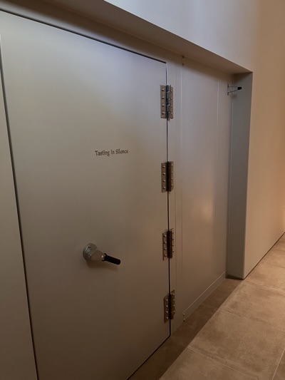 Hinokami has a second tasting room. It is anechoic chamber. Besides being a hard word to spell, when you are locked in a dark room with some people you just met and several stemmed glasses, shit could goes down. Obviously I’m exaggerating, but when I smelled the two drams I immediately got the peat note. The challenge was to decide which dram was 1% peated whisky in the formula. After a few minutes in the dark, doubt creeps in, but I stuck with my answer and apparently I was the most confident of my group.