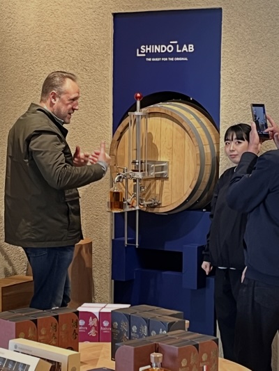 We were treated to tea and sweets then we toured the facility. Mr. Naoki Mitsuyasu personally climbed up to serve us right from the cask. It was a bit precarious but I believe everything turned out alright.