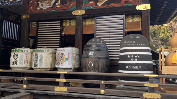 Chichibu Distillery is a bit old fashioned, they were even doing some floor malting while we were there. They do have an official Instagram, but perhaps not a website. Generally they don’t do tours, however they do have a gift shop so they must do some, supposedly only for industry folks. You may have to buy the bottles in town and we learned many businesses have prospered alongside the growth of the distillery. For instance, there is a whisky cask in the Shinto Shrine.